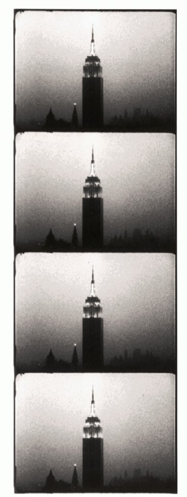 NOTE: For this post, I initially watched what I thought was the full, uncut version of “Empire”. Unfortunately it turned out that this was not Andy Warhol’s version, but rather a recreation by a devoted fan (Which I would have noticed had I read the video description. That’ll learn me). The longest excerpt of “Empire” readily available online is a 61 minute video embedded below. As with a handful of other entries on this blog, consider this a placeholder post to be reevaluated once I watch the entire film.