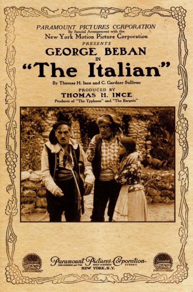 - This is a very meta opening: A curtain parts to reveal George Beban (playing himself?) in a smoking jacket settling down to read “The Italian”, authored by this film’s screenwriters (there’s Ince’s name again!). What a weird way to bookend your movie. It’s like if “The Wizard of Oz” began with Judy Garland reading the book in her dressing room.