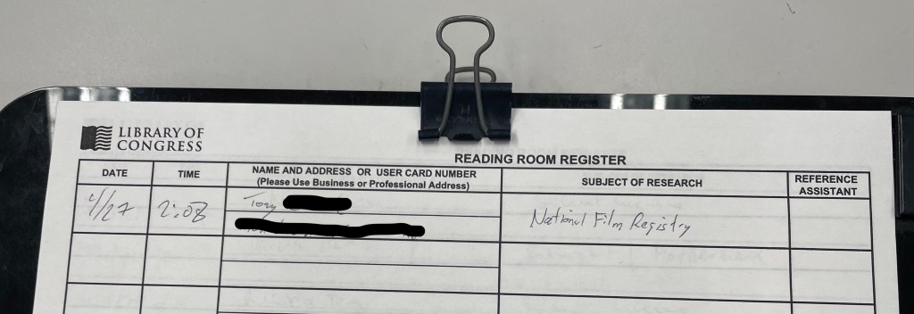 But our time with the Library of Congress didn’t stop there. In my pre-trip research, I found that the Library’s Moving Image Research Center is in the James Madison building, across the street from the Jefferson building. Thankfully, the library is open to any inquiring researcher (appointments preferred, of course), and the GF and I headed across the street to pay a visit. Our time there was brief, but incredible. Sitting in the serenity of the Moving Image Research Center, surrounded by books on every conceivable film and TV topic, sitting among people who have devoted their lives to preserving film history, was a dream come true and surprisingly moving. Shout out to Dorinda, one of the Moving Image Research Center’s viewing technicians who helped me find what I was looking for, sent me a follow-up email with more resources, and even loaned me a quarter for the locker! If the Library has an Employee of the Month program, she gets my vote.