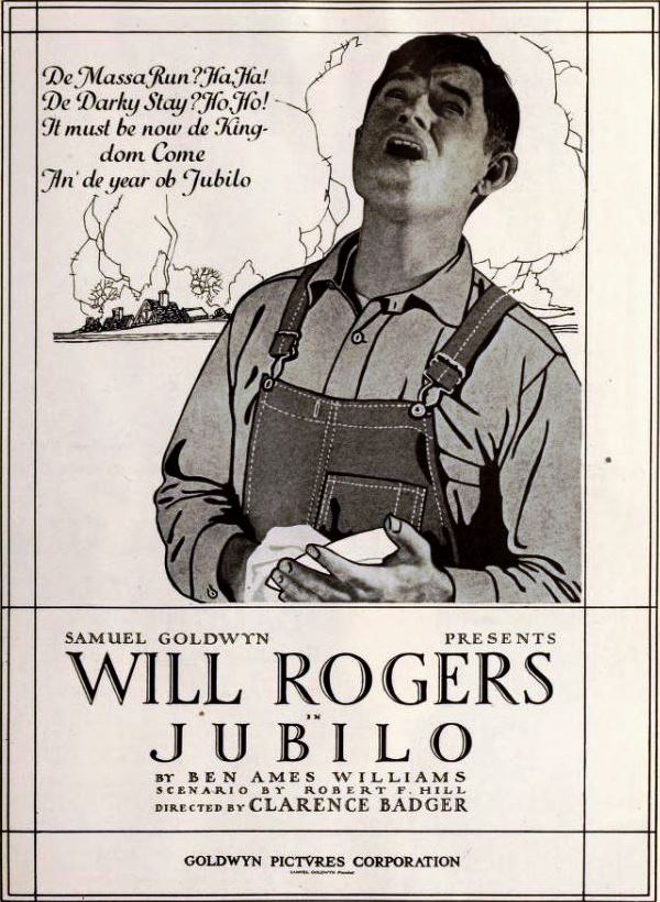 - “Jubilo” was Will Rogers’ third movie, and the earliest known to still survive. It was also his second of an eventual 14 collaborations with director Clarence Badger, the first was “Almost a Husband”, released just two months before “Jubilo” in October 1919. Once again, the turnaround on these things, I tell ya.