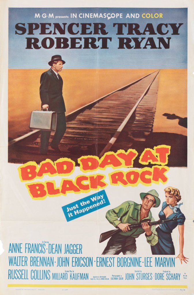 - “Bad Day at Black Rock” marked Spencer Tracy’s final film as a contract player with MGM after 20 years, opting to spend the rest of his career as a freelance agent. Tracy would, however, briefly return to MGM in 1962 to narrate “How the West Was Won“.