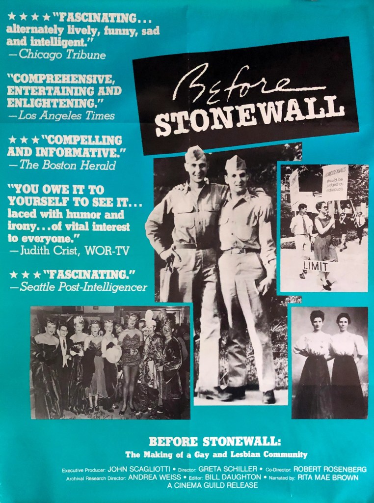 - “Before Stonewall” premiered at the Toronto International Film Festival in 1984 and received a limited theatrical release in June 1985. As part of their funding agreement with the Corporation for Public Broadcasting, “Before Stonewall” aired on PBS in 1986, the first film specifically about lesbianism to be funded and broadcast by the network. When certain PBS affiliates refused to air the documentary, Greta Schiller and Andrea Weiss traveled to those regions and held special screenings for local gay and/or arts organizations.